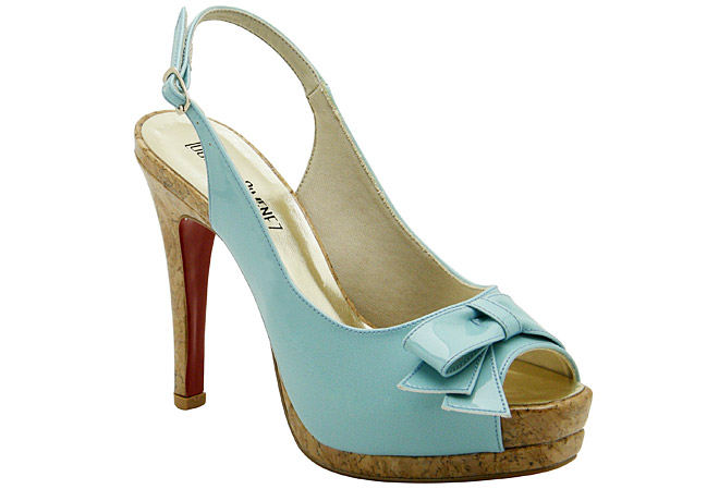 Sandália de salto feita com cortiça e verniz azul-claro, da coleção primavera-verão Miucha by Luciana Gimenez. Preço: R$169,90 SAC: (51) 3546 7000