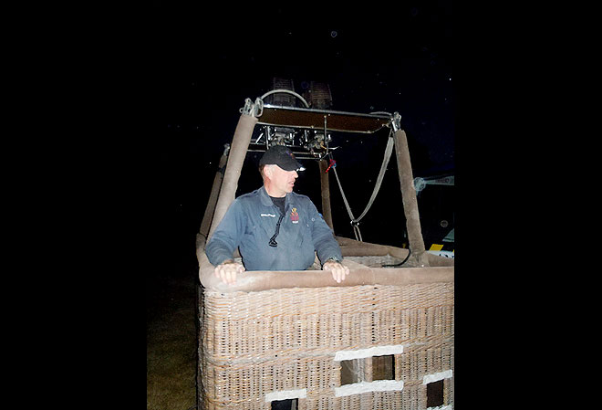 Piloto do balão, Nigel faz os primeiros ajustes no cesto que será usado para o passeio.