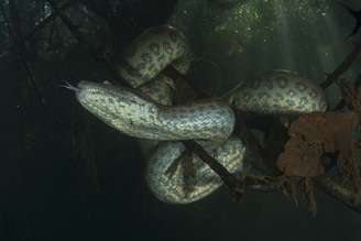 "Outras espécies, como crocodilos gigantes e tartarugas gigantes, foram extintas desde o Mioceno... mas as sucuris gigantes sobreviveram — elas são extremamente resistentes. Elas desenvolveram um grande porte corporal logo após surgirem na América do Sul tropical, há cerca ...