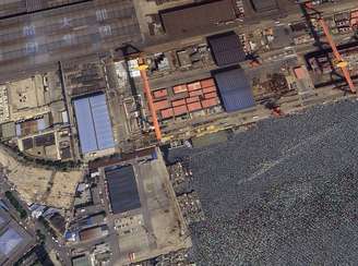 Como aponta o The War Zone, as imagens obtidas pela Airbus e acessíveis no Google Earth são do ano passado, embora tenham ganhado destaque recentemente. A imagem de satélite sugere que o porta-aviões ainda está em fase inicial de construção, com estruturas que parecem se encaixar no sistema de catapulta. Além disso, foram identificadas maquetes de um caça J-15 Flanker e de um helicóptero naval da série Z-8. Esse tipo de elemento não é acidental: eles costumam ser usados em testes e desenvolvimento de novos porta-aviões.
