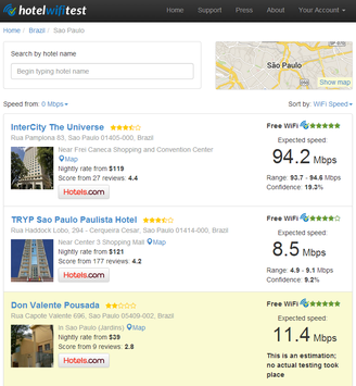 Chamado de Hotel Wi-Fi Test, o site testa a velocidade de hotéis em diversas cidades pelo mundo todo, como Nova York, São Paulo, São Francisco, Rio de Janeiro, Las Vegas, entre outras, para que a pessoa decida se quer mesmo reservar um quarto no local.