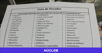 A lista impressionou pela quantidade de pecados (mais de 100), pelos erros de digitação ("pronografia", "drogras"), pelo preconceito religioso ("umbanda", "orixás/vodu"), pela hipocrisia ("racismo"), pela contradição ("religiosidade"), pelo nonsense ("suicídio"?) e, da minha parte, pela falta de paralelismo sintático.