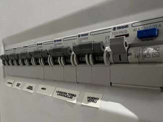 Durante o processo, o eletricista recomendou etiquetar cada chave do quadro elétrico (ou quadro de distribuição) com nomes identificativos. Esse hábito, embora simples, é altamente recomendável e pode evitar sustos e complicações desnecessárias.