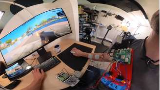 O mecanismo é fascinante. Um software externo examina a tela em busca de inimigos. Assim que detecta um, envia um sinal para um Raspberry Pi , que, por sua vez, ativa diodos de estimulação muscular estrategicamente posicionados em seu antebraço e mão. Essas pequenas cãibras forçam seus músculos a se contraírem, movendo o mouse em direção ao alvo e clicando.