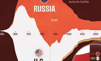 A Rússia segue seu próprio caminho, os Estados Unidos não querem ficar para trás e há um novo competidor: a China. Isso fica perfeitamente refletido neste gráfico elaborado pela Visual Capitalist com dados estimados da FAS.