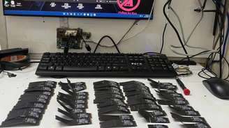 Para esse "teste", ele pegou uma caixa com 50 SSDs e dobrou todos ao meio, um por um. Na imagem publicada, é possível ver os muitos SSDs dobrados. O usuário acrescentou a seguinte explicação à imagem: