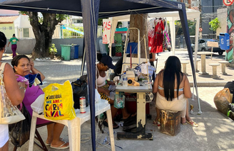 Perto dali, subindo a mesma rua está o AteliGê, gerenciado por Geraldo Santos, de 54 anos. Com estrutura de um espaço físico completo, o ateliê funciona o ano todo fazendo reformas de peças e costura de biquinis.