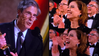 "Esse prêmio vai para uma mulher, que durante uma perda sofrida em um regime autoritário, decidiu não se curvar e resistir. Então, esse prêmio vai para ela. O nome dela é Eunice Paiva. E também vai para as duas mulheres incríveis que interpretaram ela, Fernanda Torres e Fernanda Montenegro. E vai às duas mulheres extraordinárias que deram vida a ela, Fernanda Torres e Fernanda Montenegro", completou Walter Salles.
