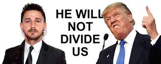 Nova York tem um novo ponto turístico. E político. Às 9 da manhã da última sexta-feira (20), num muro externo do Museu da Imagem em Movimento, o ator e performer Shia LaBeouf inaugurou a obra "He Will Not Divide Us" — trocadilho entre "Ele não irá nos dividir" e "Ele não dividirá os Estados Unidos" —, em protesto a Donald Trump.