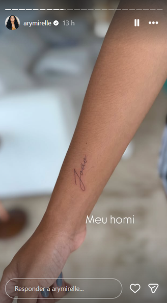 Ary Mirelle decidiu eternizar na pele o amor que sente pelo marido, João Gomes. A influenciadora tatuou o nome do artista no braço e declarou: "Meu homem".