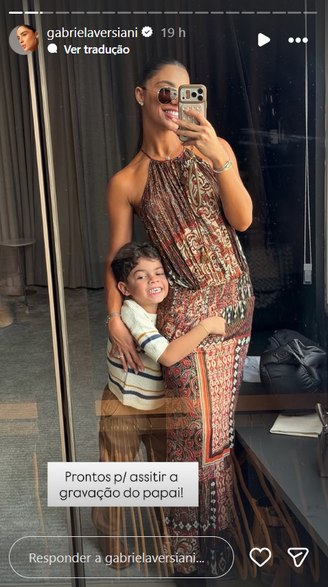 Na legenda da publicação, Gabriela destacou o momento em família ao escrever: "Prontos para assistir a gravação do papai".