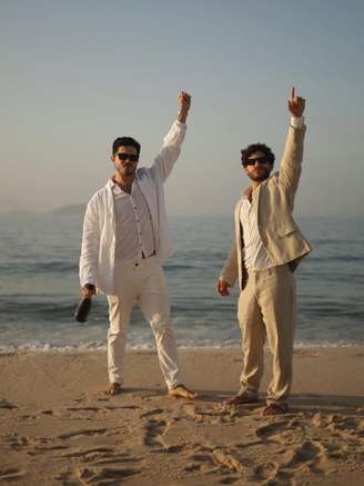 Nos registros, feitos em uma praia no Rio de Janeiro, os dois aparecem em clima de romance enquanto celebram a proximidade da cerimônia.