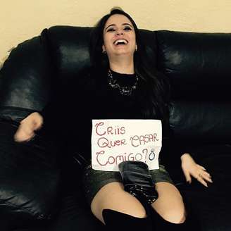 Nela, a jovem aparece muito sorridente com uma plaquinha: "Cris, quer casar comigo?". O produtor fez um desabafo na legenda. "Daria tudo para produzir e cuidar de todos detalhes deste casamento, Patroinha! Mas queria ser padrinho!", escreveu.