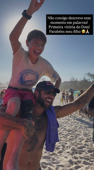 "Não consigo descrever esse momento em palavras. Primeira vitória do Dom! Parabéns, meu filho", declarou o surfista.