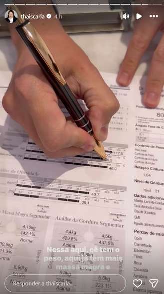 Segundo o profissional responsável pelo acompanhamento, a influenciadora perdeu cerca de 23 quilos de gordura corporal desde agosto. O médico ressaltou que o resultado vai além do número exibido na balança, já que, no mesmo período, Thais ganhou massa magra. "Ela perdeu gordura e ganhou músculo, apesar do emagrecimento intenso da bariátrica. Isso é mérito dela, com muita atividade física, alimentação adequada e suplementação", explicou.