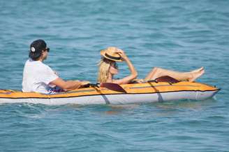 O casal andou de caiaque e se divertiu com os amigos. No barco, Heidi foi fotografada dançando enquanto estava sentada no colo do namorado.