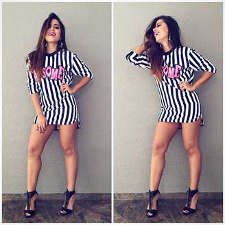 Fazendo caras e bocas, Anitta postou nesta segunda-feira (11) uma montagem usando um vestido curto listrado, que deixou suas pernas definidas à mostra. “E lá vamos nós”, escreveu ela no Instagram.