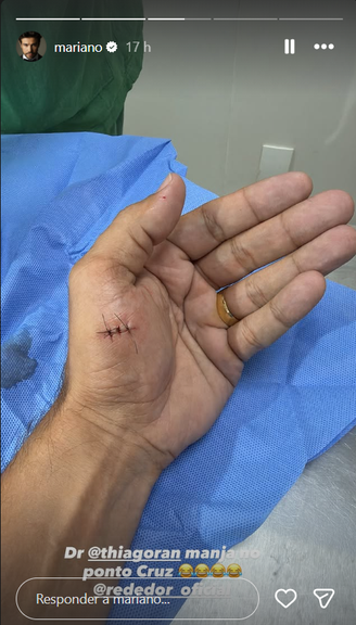 Mariano, de 38 anos, da dupla Munhoz & Mariano, sofreu um acidente doméstico nesta segunda-feira (19). O cantor se cortou acidentalmente na mão enquanto fazia limpeza em casa.