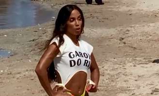 Anitta utilizou uma calcinha asa-delta, juntamente com uma camisa branca, onde figura a frase Garota do Rio.