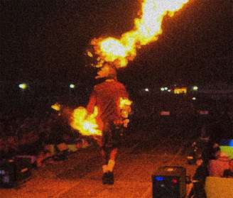 Conforme visto nas imagens da apresentação, Djonga não se deu conta de que foi atingido por um jato de fogo enquanto atravessava a passarela da atração. O artista acabou sendo avisado pelos fãs que estava pegando fogo e decidiu arrancar a bermuda ainda no palco. "Vou ter que cantar assim, será? Desse jeitão?", ele brincou depois do susto.