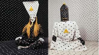 Como te contamos por aqui, a dupla traz em sua música uma combinação pouco convencional de Jazz, Rock Progressivo, Math Rock e outras referências. Mas para além da sonoridade interessante, o visual dos artistas também chama atenção: eles se apresentam com figurinos de bolinhas em preto e branco e máscaras de papel machê, escondendo sua verdadeira identidade.