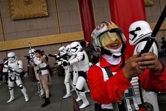 Em Taipé, fãs se vestiram de seus personagens favoritos, incluindo Rey, heroína de "O Despertar da Força", filme mais recente da saga, Chewbacca, stormtroopers e cavaleiros Jedi, e tiraram fotos ao lado de R2-D2 e Jabba.