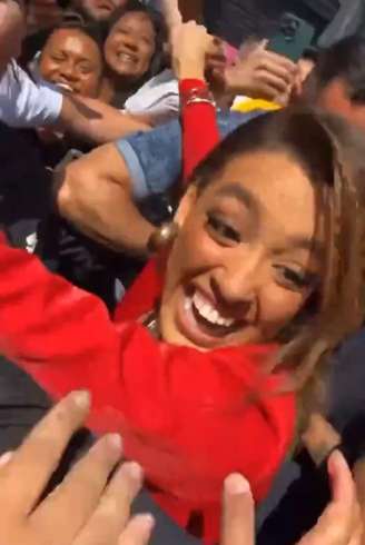 Ao contrário de Davi Brito, que não para de ostentar desde que venceu o "BBB 24", Beatriz apareceu com um conjunto vermelho comprado no camelô. Ela esbanjou simpatia, ao atender a pedidos de fotos e conversou com alguns dos fãs presentes.
