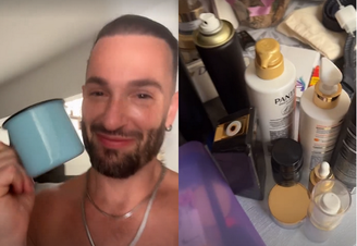 Depois, o ex-BBB mostrou produtos que eram dados pelos patrocinadores do programa para serem usados durante o reality. "Eu peguei tanta coisa da Pantene. Não podia. Mas Globo, não pede para eu devolver", suplica, mostrando uma maleta abarratoda de produtos de cabelo da marca e também da Dove.