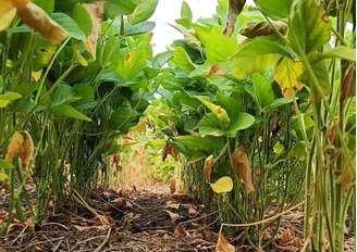 Os dias de muito calor, secos e com alta intensidade da radiação solar, provocou elevada taxa de evapotranspiração o que impacta o desenvolvimento, florescimento e a fase de enchimento dos grãos da soja. Nas lavouras mais afetadas, as plantas apresentam folhas murchas, desfolha, aspecto amarelado e acentuada queda de flores.
