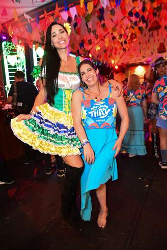 A jogadora de vôlei Jaqueline Carvalho e a ginasta Daniele Hypólito chamaram atenção ao se encontrarem durante o São João da Thay, na noite desta sexta-feira, 6.