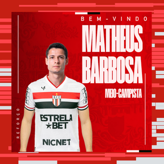 Na tarde desta segunda-feira, o Botafogo-SP anunciou a contratação do meio-campista Matheus Barbosa, de 29 anos. Experiente, o jogador tem passagens por clubes como Vasco, Atlético-GO, Cruzeiro, Cuiabá e Guarani, o qual defendeu na última temporada.