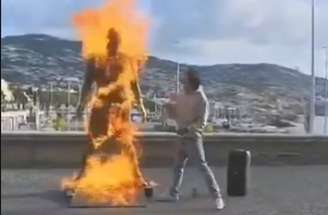 Fogo na estátua de Cristiano Ronaldo