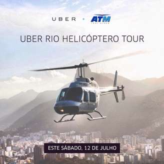 O aplicativo de caronas pagas Uber está oferecendo um tour de helicóptero pelo Rio de Janeiro para comemorar o final da Copa do Mundo 2014. Por meio do app para iPhone e Android, as pessoas poderão solicitar um voo de 30 minutos por toda a cidade para o próximo sábado, 12, entre 13h e 16h.
