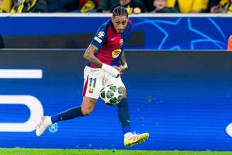 Com Raphinha e Lamine Yamal, o Barcelona tentou sair do sufoco, mas a defesa do Borussia, bem postada, não dava chances para o time espanhol.
