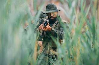 Dessa maneira, o defensor de 23 anos publicou várias fotos da aventura nas redes sociais, onde aparece vestido com uniforme militar completo e posando em cenários preparados especialmente para a ação.