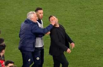 Após se levantar, Buruk tentou tirar satisfação com o português, mas foi contido pelos próprios jogadores e seguiu caminhando de volta ao centro do campo.