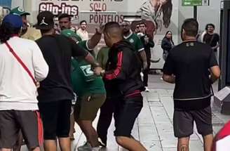 De acordo com as imagens divulgadas pelo 'Canal De Gira', um grupo pequeno de torcedores dos dois clubes iniciou uma discussão que escalou em poucos segundos. O registro mostra rubro-negros e palmeirenses arremessando cadeira e trocando socos diante de testemunhas no local.