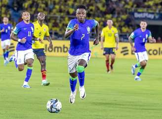 A lesão muscular de Vinícius Júnior aconteceu ainda no primeiro tempo da derrota brasileira contra a Colômbia, em Barranquilla. O camisa 7 foi substituído por João Pedro, do Brighton (Inglaterra), que fez sua estreia com a camisa da Canarinho.