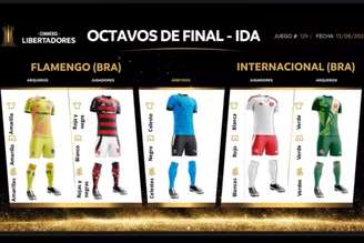 Conmebol define uniformes de Flamengo e Internacional pelas oitavas de final da Libertadores (Foto: Conmebol)