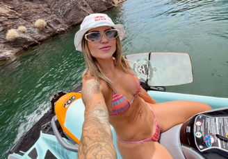 A atleta estava em uma lancha com amigos, na região de lagos conhecida como Havasu, no estado norte-americano do Arizona, gravando com o seu celular até que ela perdeu o equilíbrio e escolheu salvar o aparelho do que a si mesma da queda na água.