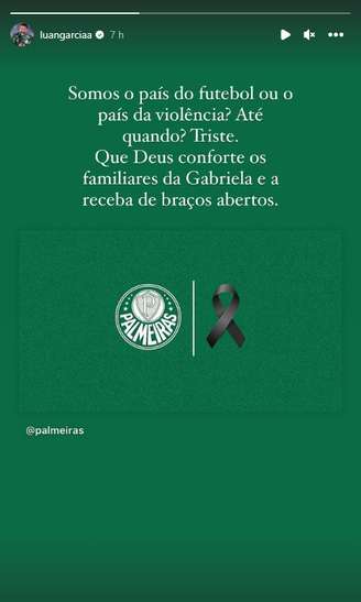 Alguns atletas do elenco também se manifestaram. O próprio Palmeiras dedicou um texto para a vitíma, republicado por vários jogadores.