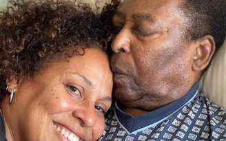 Em uma das imagens postadas, ela aparece segurando uma das mãos de Pelé.