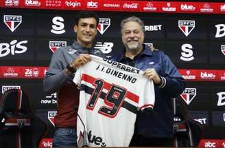 O São Paulo apresentou, nesta quarta-feira (11/6), o atacante Juan Dinenno. O argentino assinou um contrato de seis meses, que pode ser renovado automaticamente em caso de metas atingidas. O jogador, logo em suas primeiras palavras, demonstrou muita vontade de entrar em campo com a camisa do Tricolor e revelou uma conversa em particular com seu compatriota Calleri, para fechar acordo com o Soberano.