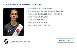 O jogador já teve sua documentação regularizada e está inscrito para as competições oficiais da temporada. A chegada de Lucas Hanry encorpa o elenco da "Base Forte" e reforça a estratégia do Vasco em captar os melhores talentos do mercado nordestino para lapidação em São Januário.