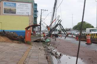 A queda do poste deixou parte da região sem luz. Equipes da RGE trabalham para restabelecer o serviço, mas ainda não há previsão de retorno.