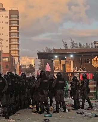 Vídeos que circulam nas redes sociais registram a presença de policiais equipados com material de tropa de choque durante a intervenção, que aconteceu em meio ao grande fluxo de público na orla.