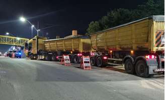A carreta permaneceu retida até que a carga excedente fosse transferida para outro transporte, liberando o tráfego apenas após a regularização.