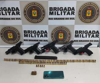 A interceptação aconteceu pouco depois, quando os agentes encontraram um arsenal dentro do carro: cinco pistolas 9mm de marcas como Canik, Bersa e Taurus, algumas com a numeração suprimida. Também foram apreendidos 95 munições, um carregador extra, porção de maconha e um celular.