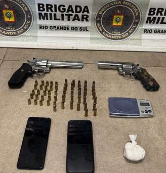 Durante patrulhamento, a equipe da Força Tática localizou o suspeito e efetuou a abordagem. Com ele, foram apreendidos dois revólveres calibre .38, 32 munições compatíveis, 26 munições de calibre 9mm, cerca de 50 gramas de cocaína, uma balança de precisão e dois celulares.