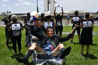 Um grupo de manifestantes realizou performance na manhã deste sábado, 30, em frente ao Congresso Nacional em protesto pelo impeachment do presidente Jair Bolsonaro. O alvo também foi o presidente da Câmara dos Deputados, Arthur Lira (PP-AL), a quem cabe analisar mais de uma centena de pedidos de afastamento de Bolsonaro que já foram protocolados no parlamento.